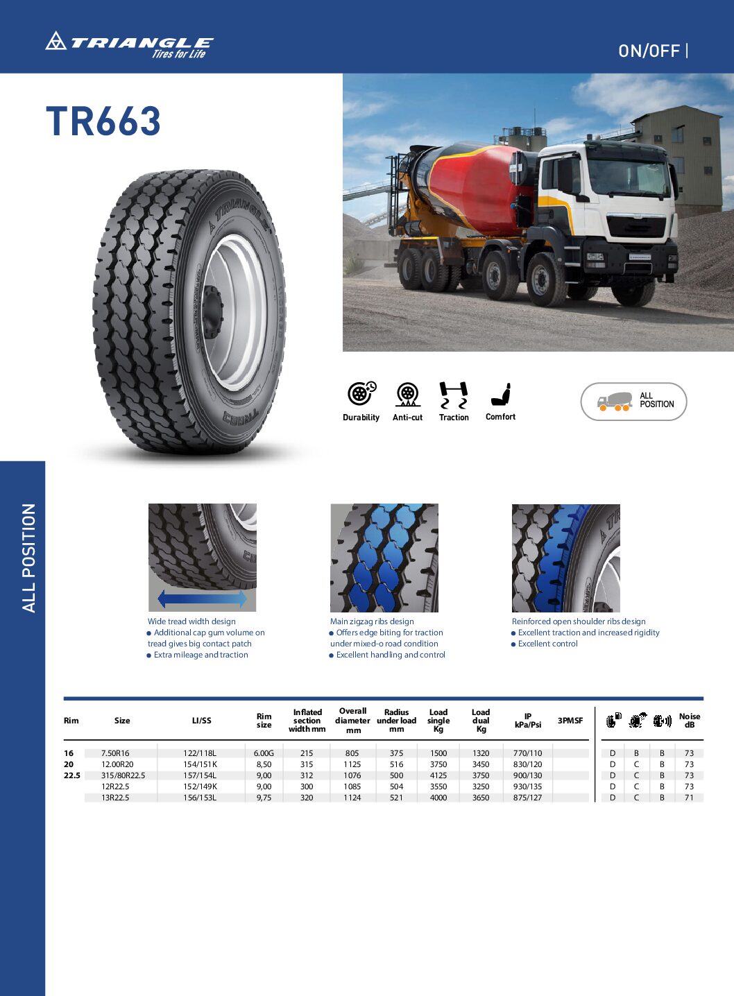 Anvelopa TIR Triangle TTM-A11 385/65R22.5 este proiectată pentru vehicule comerciale grele, fiind ideală pentru utilizare pe axa de direcție sau semiremorcă, în special în transportul pe distanțe lungi și aplicații regionale. Aceasta oferă o combinație excelentă între durabilitate, stabilitate și eficiență în exploatare.